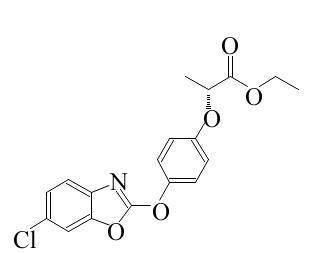 別名 精乙基噁唑禾草靈;(R)-2-{4-[(6-氯苯并噁唑-2-基)氧]苯氧基}丙酸乙酯;(2R)-(+)-2-[4-(6-氯苯并噁唑-2-基氧基)苯氧基]丙酸乙酯;Ethyl (2R)-(+)-2-[4-(6-chlorobenzoxazol-2-yloxy)phenoxy]propionate