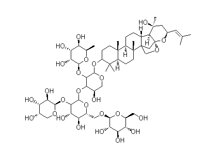別名   酸棗仁皂苷 A ;酸棗仁皂甙A ;O-6-Deoxy-a-L-mannopyranosyl-(1(r)2)-O-[O-b-D-glucopyranosyl-(1(r)6)-O-[b-D-xylopyranosyl-(1(r)2)]-b-D-glucopyranosyl-(1(r)3)]-(3b,16b,23R)-16,23:16,30-diepoxy-20-hydroxydammar-24-en-3-yl-a-L-arabinopyranoside