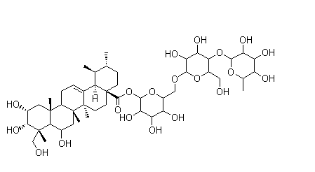 別名 羥基積雪草甙;Asiaticoside A ;Madecassoside ;Redermic;O-6-Deoxy-alpha-L-mannopyranosyl-(1.4)-O-beta-D-glucopyranosyl-(1.6)-beta-D-glucopyranosyl (2alpha,3beta,4alpha,6beta)-2,3,6,23-tetrahydroxyurs-12-en-28-oate
