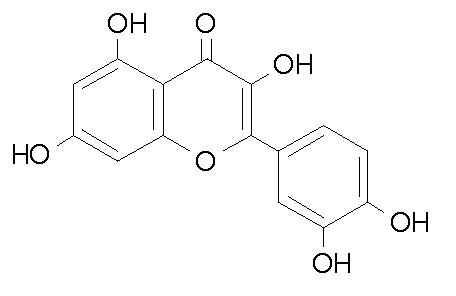 別名 槲皮素(無水) ;3,3',4',5,7-五羥基黃酮,2-(3,4-二羥苯基)-3,5,7-三羥基-4H-1-苯并吡喃-4-酮,槲皮黃素,櫟精;3,3',4',5,7-Pentahydroxyflavone 2-(3,4-Dihydroxyphenyl)-3,5,7-trihydroxy-4H-chromen-4-one