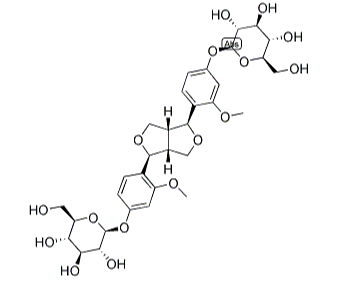 英文名稱:Pinoresinol diglucoside CAS號:63902-38-5 分析標準品,>98% 分子式 C32H42O16 分子量682.67
