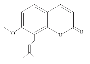 別名 蛇床子素 ;7-甲氧基-8-異戊烯基香豆素,喔斯腦,歐芹酚甲醚 ;7-Methoxy-8-(3-methyl-2-butenyl)-2H-1-benzopyran-2-one