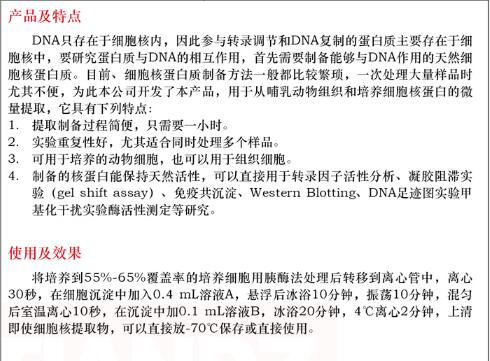 產(chǎn)品名稱:動物細(xì)胞核蛋白微量制備試劑盒