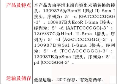 產(chǎn)品名稱(chēng):EcoR I-Not I-BamH I 接頭