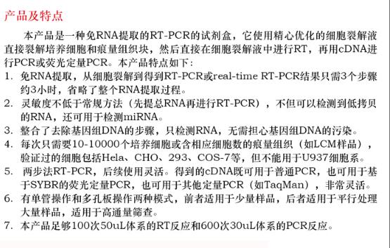產品名稱:免 RNA 提取 RT-PCR 試劑盒