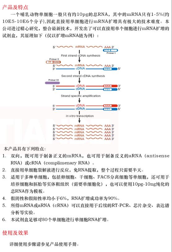 產(chǎn)品名稱:天凈沙單細(xì)胞 RNA 擴(kuò)增試劑盒