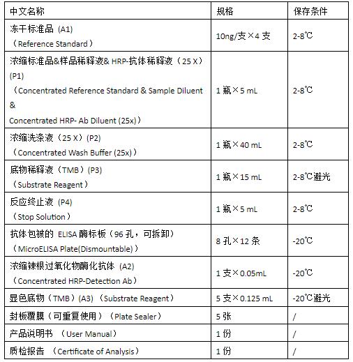 重組胰蛋白酶酶聯免疫吸附測定試劑盒.試劑盒組成及保存