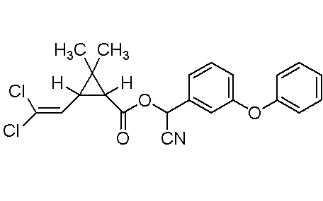 別名  氯氰菊酯 ;3-(2,2-二氯乙烯基)-2,2-二甲基環(huán)丙烷羧酸 alpha-氰基-3-苯氧基芐酯 ;Alphamethrine
