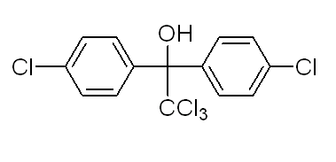別名  2,2,2-三氯-1,1-(4-氯苯基)乙醇,開樂散;1,1-Bis-(chlorophenyl)-2,2,2-trichloroethanol; 2,2,2-Trichloro-1,1-bis(4-chlorophenyl)ethanol; 4,4'-Dichloro-alpha-(trichloromethyl)benzhydrol;