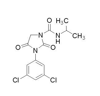 別名  異菌脲 ;3-(3,5-二氯苯基)-1-異丙基氨基甲酰基乙內酰脲,3-(3,5-二氯苯基)-N-(1-甲基乙基)-2,4-二氧代-1-咪唑烷羧酰胺,撲海因;[3-(3,5-Dichlorophenyl)-2,4-dioxoimidazolidinyl]-N-(methylethyl)carboxamide 3-(3,5-Dichlorophenyl)-N-(1-methylethyl)-2,4-dioxo-1-imidazolidinecarboxamide