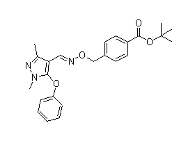 別名  E)-alpha-(1,3-二甲基-5-苯氧基吡唑-4-亞甲基氨基氧)對甲苯甲酸叔丁酯;殺螨王;霸螨靈;1,1-Dimethylethyl (E)-4-(((((1,3-dimethyl-5-phenoxy-1H-pyrazol-4-yl)methylene)amino)oxy)methyl)benzoate; tert-Butyl (E)-4-(((((1,3-dimethyl-5-phenoxy-1H-pyrazol-4-yl)methylene)amino)oxy)methyl)benzoate