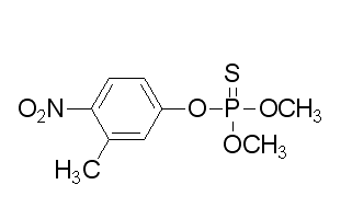 別名  速滅蟲(chóng);蘇米松;殺螟松;O,O-二甲基-O-(3-甲基-4-硝基苯基)硫代磷酸酯;O,O-Dimethyl O-(3-methyl-4-nitrophenyl) phosphorothioate; Phosphorothioic acid O,O-dimethyl O-(3-methyl-4-nitrophenyl) ester; Nitrophos