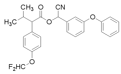 別名  氟氰戊菊酯 ;氟氰菊酯;中西氟氰菊酯;R,S)α-氰基-間苯氧基芐基(S)-2-(對二氟甲氧基苯基)-3-甲基丁酸酯;α-Cyano-3-phenoxybenzyl 4-difluoromethoxy-α-isopropylphenylacetate