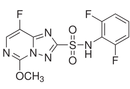 別名 雙氟磺草胺 ;麥?zhǔn)┻_(dá),麥喜為,2',6'-二氟-5-乙氧基-8-氟[1,2,4]三唑[1,5-c]嘧啶-2-磺酰苯胺;2',6' -difluoro-5-ethoxy-8-fluoro[1,2,4]triazolo[1,5 -c]pyrimidine-2-sulfonanilide