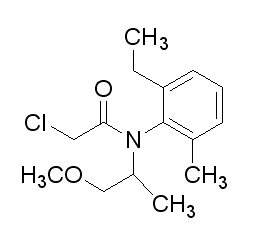 別名  異丙甲草胺 ;丙草胺,2--N-(1-甲基-2-甲氧乙基)-N-(2-乙基-6-甲基苯基)乙酰胺 ;2-Chloro-N-(2-ethyl-6-methylphenyl)-N-(2-methoxy-1-methylethyl)acetamide
