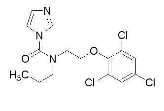 別名  咪酰胺;撲霉靈;丙滅菌;施保克;N-丙基-N-[2-(2,4,6-三氯苯氧基)乙基]-咪唑-1-甲酰胺;N-Propyl-N-(2,4,6-trichlorophenoxy)ethyl-imidazole-1-carboxamide