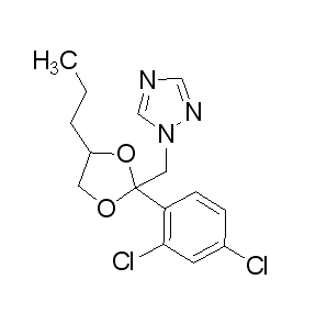 別名  丙環(huán)唑 ;1-[2,4-二氯苯基)-4-丙基-1,3-二氧戊環(huán)-2-甲基]-1-1,2,4-三唑;