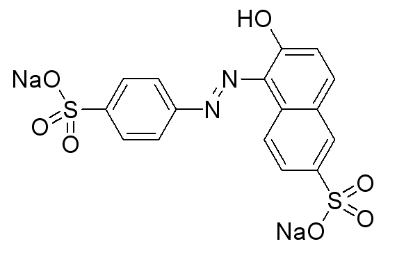 別名 日落黃 ;日落黃FCF,1-對磺酸苯基偶氮-2-羥基萘-6-磺酸二鈉鹽,食用黃色6號,食品黃 3 ;Food Yellow 3 C. I. 15985 FD&C Yellow No. 6